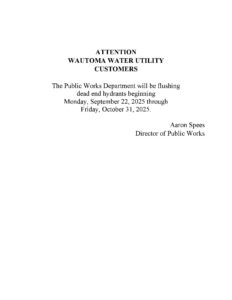 ATTENTION WAUTOMA WATER UTILITY CUSTOMERS The Public Works Department will be flushing dead end...